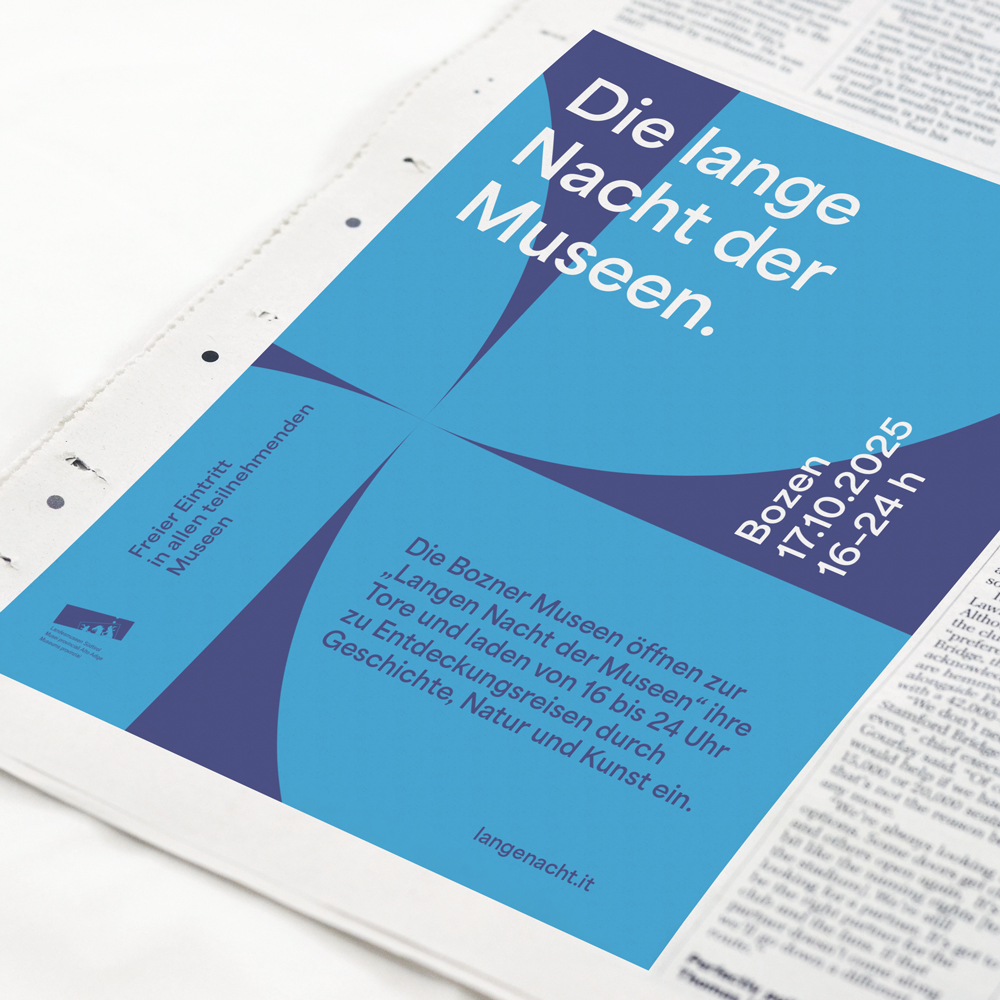 Die ersten Kommunikationsmaßnahmen sind bereits gestartet und vermitteln die kulturelle Vielfalt der Stadt, während sie zugleich die Vorfreude auf die Nacht vom 17. Oktober 2025 wecken. Ein Projekt im Wandel, das Bozen in einem neuen Licht zeigt – offen, lebendig und voller Inspiration.